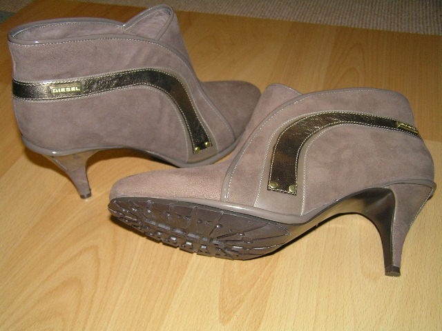 Prodám zcela nové semišové kotníčkové kozačky DIESEL. výška podpatku je 7,5cm. přivezla jsem tyto dva páry kamarádce z UK, bohužel na ni moc vysoký podpatek. jsou krásné, sama mám stejné dva páry. fantasticky pohodlné, měkoučké, noha je skutečně jak v bačkůrce.