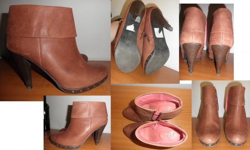 Nošené příležitostně na mě vysoké,vyměněné patníky,pravá broužená kůže,ne koženka,vnitřek lososový.Sedí na 39.Podpatek změřím,ale je to cca 10/11 cm myslím.