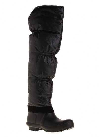 Podobné jsem viděla u Bati, mají tam víc druhů, i bez podpatku, spodní část byla z gumy a nahoře měly právě ty "buřtíky". Já koukala na ty nejvyšší, myslím, že byly nad kolena, a cena byla 1799,- Kč.