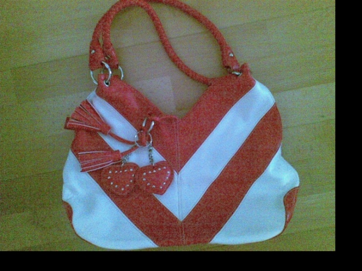 Kožená červeno-bílá kabelka se zapínáním s červenými srdíčky a třásněmi.Prodám za 500,- Mám toho doma mraky a už to nemám kam dávat, tak jsem se rozhodla, že něco musi pryc, tak nabízim.