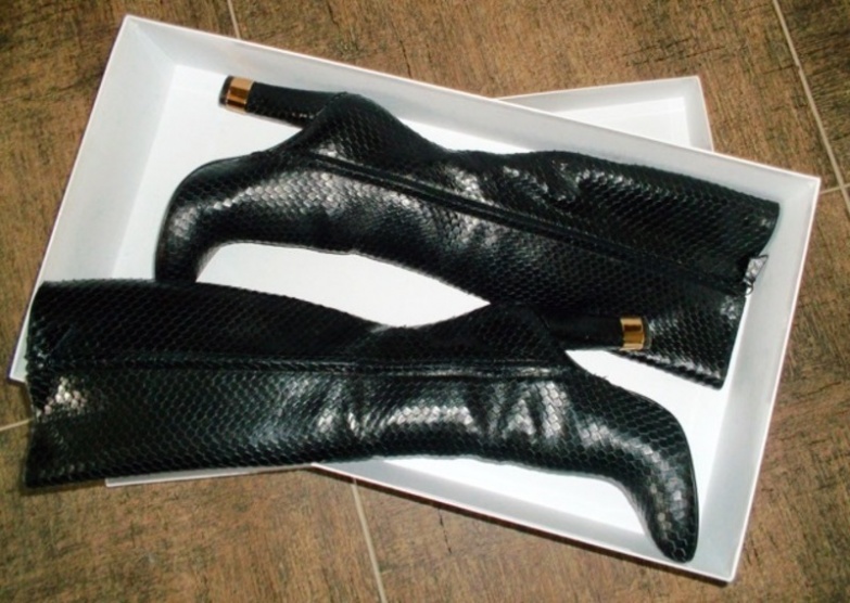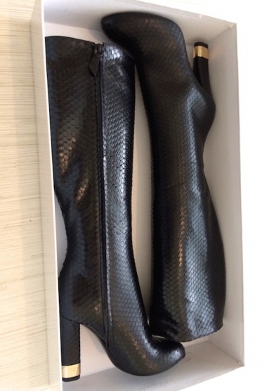 Výška kozačky 47 cm, horní obvod 37 cm, výška podpatku 10 cm. Originál krabice, originál plátěný cestovní pytlík, pravá kůže. Vyrobené v Itálii. Podrážka a podpatky jeví jen velmi mírné známky opotřebení. Byly zakoupeny na jaře 2015 za 11 tis.