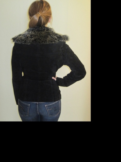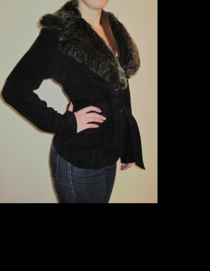 Černý kožený kabátek s odepínatelným límcem z umělé kožešiny z C&A značky Clockhouse.