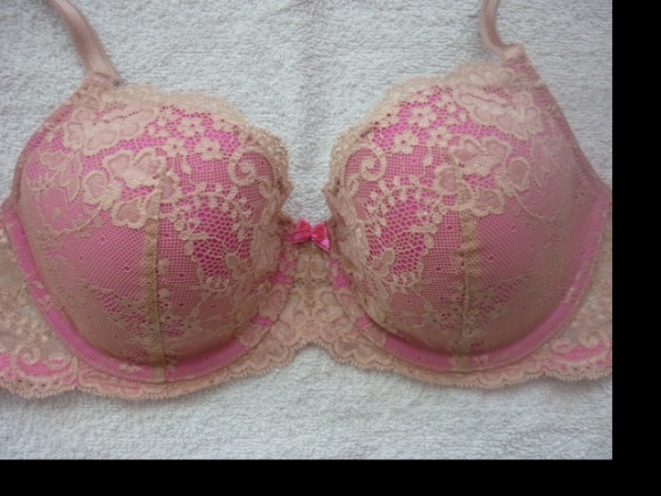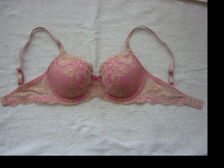 Prodám novou, něžnou podprsenku v nude - růžové barvě, s kolekce Dream angels.Je vyztužená, ale lehoučká, má tzv.Memory Fit - paměť, přizpůsobí se tvaru prsou, takže jí na těle ani necítíte.Jako bonus přidávám kalhotky střih sheeky velikost S