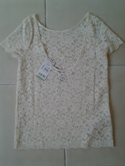 Nové, nenošené, s cedulkou, kupované zde. Mně je bohužel malé a tak jsem nucena tričko poslat dál. Je krásné, kdybych nemusela, nevzdám se ho. Působí něžně a romanticky. Ideální na léto. Materiál 70% bavlna, 30% polyamid.