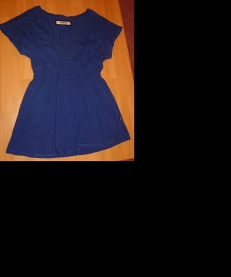 0Tunika má krásně modrou barvu, výstřih do V a pod prsy je guma. Pořízená na jiném bazaru a mnou nenošená, předchozí majitelkou prý málo nošená.