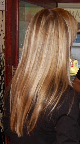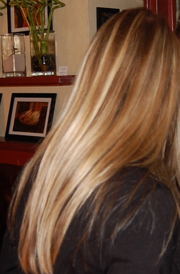 Cituji B.bbbb: Moje přírodní barva je tmavší hnědá, kterou jsem barvila na jantarovou. Po čase, když už se mi zdála jakž takž vymytá a odrostlá, nechala jsem si udělat hustý blond melír.