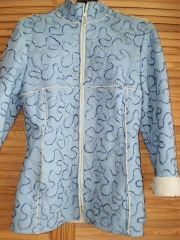0Krásný modrý kožíšek, slabší, s beránkem, projmutý navrchu je našitá ozdobná nit, Itálie. Velikost cca S-M. Cena 300,- + pošta.
