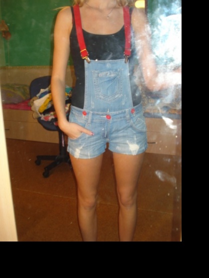 Nabízím nenošené mini riflové kratasy s červenýma kšandama. Bohužel to není můj styl. Jinak jsou nepoškozené, protože jsem je neměla ani jednou na sobě. Necítím se v nich..