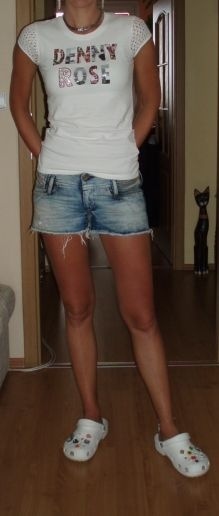 Myslím, že jsou z kolekce 2010, kupovala jsem si je loni. Na sobě jsem je měla pouze párkrát na dovolené. Jsou moc pěkné, krátké. Vel. 38- šířka v pase 38-39cm. Cena za kraťasy je 349,- vč. poštovného.