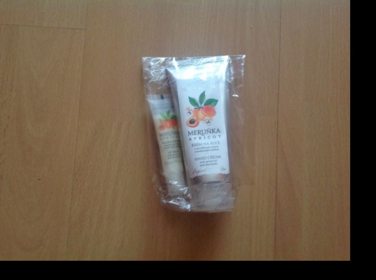Set kŕmu na ruce a balzámu na rty s meruňkovou vůní. Zcela nové, vhodné jako dárek.