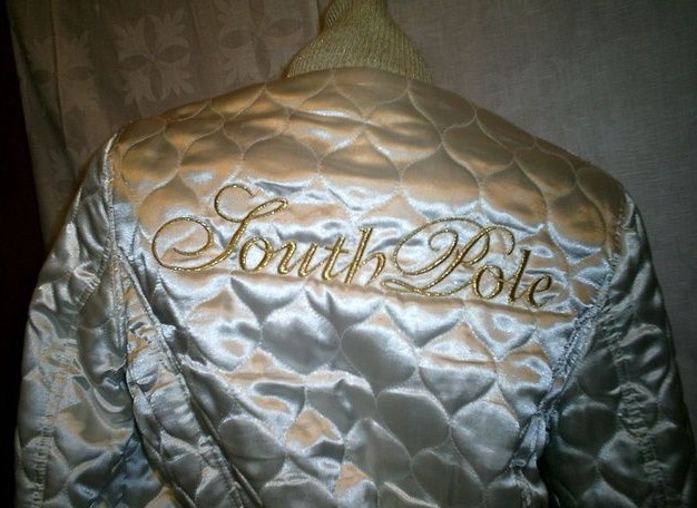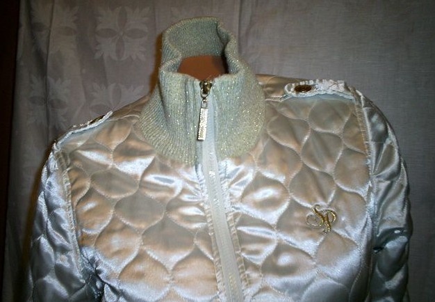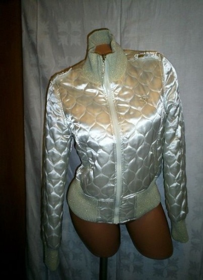 Krásná lesklá zimní prošívaná bundička, na nápletech zlatý lurex a zlaté doplňky, uvedena velikost L, ale odpovídá spíše M, na zádech logo. Délka 60 cm, přes prsa 52 cm, délka rukávu 64 cm....nošená málo, úžasná, má pár lehce povytažených nitek, ale tomu se u takového materiálu bohužel nedá zabránit.