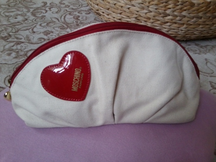 Kosmetická taštička Moshino s červenými a zlatými doplňky. Je téměř nová, bez známek používání.