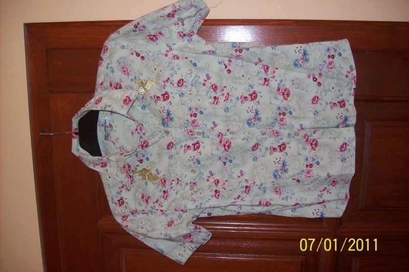 Nádherná květovaná košile s koněm vyšívaným zlatou nití. Patří k mým velmi oblíbeným, měla jsem ji na sobě párkrát a už do ní nevlezu