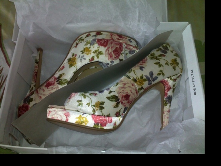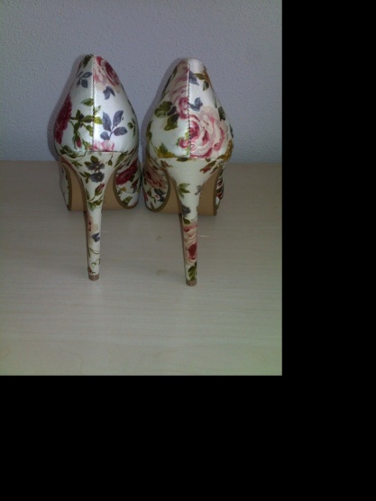 Prodám překrásné krémové vyšší lodičky s barevnýma kytičkama a špičkou. Materiál se pěkně leskne na světle.