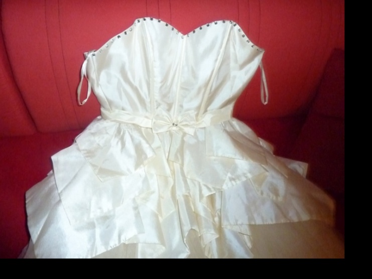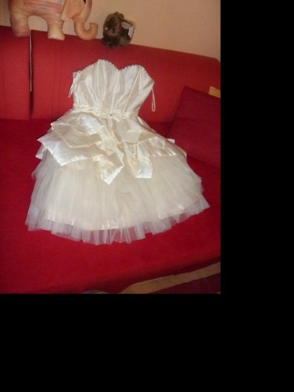 Prodám plesové šaty krémové barvy, koupené tady na omlazení, neměla jsem je na sobě ani jednou, z důvodu těhotenství už nemám šanci je dopnout