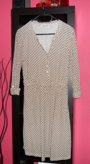 Predám velmi pekné šatičky béžovej farby velkosti L.Šaty sú velmi vhodné aj ku legínam su velmi príjemne,výstrih tvoria 4 gombičky pod ktorými je gumička.Na bokoch sú putká,vhodne na doplnenie tenkého pásku.Raz boli oblečené moja cena 250kč včetne pošty
