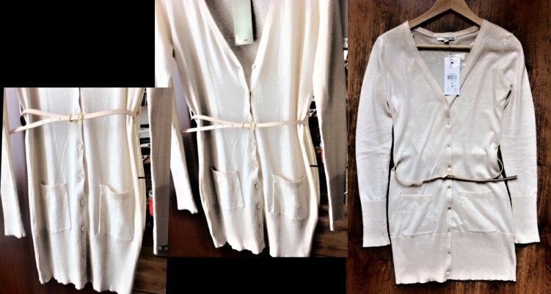 Prodám úplně nový cardigan / svetřík, skvělá délka, moderní krémová barvička, je k němu stylový páseček, ještě s visačkami, já se v něm bohužel nějak necítím ..