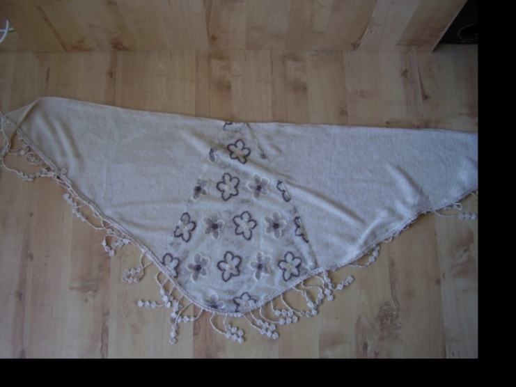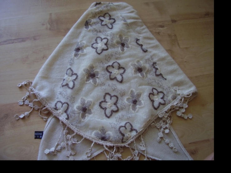 0Prodám tento krémový šátek/šál se zdobením viz foto. Měla jsem ho pouze jednou na sobě, úžasný doplněk k podzimnímu kabátku! Materiál 100% viskóza. Cena 150 Kč včetně poštovného.
