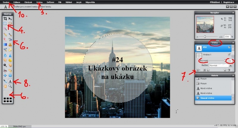 5. Klikni na obrázek a táhni myškou až se ti začne tvořit kruh/elipsa. Až máš velikost kruhu takovou jakou chceš, tak myšku pusť. Nevadí, pokud není přesně kde ten kruh chceš, protože teď můžeš kliknout dovnitř kruhu a přesunout si ho, kam potřebuješ.