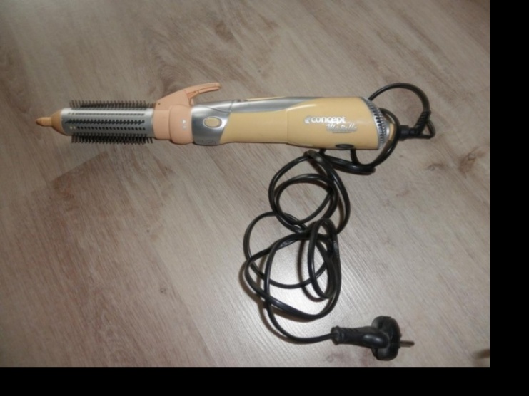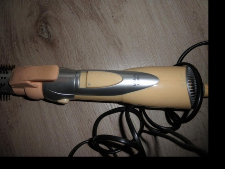* 1 kulatý kovový kartáč průměr 30 mm - se zatahovatelnými štětinami, které usnadňují vyjmutí kartáče z vlasů ještě v okamžiku když jsou teplé. Díky automatickému uvolnění nástavce lokna drží lépe tvar.