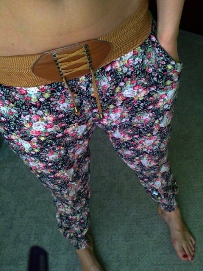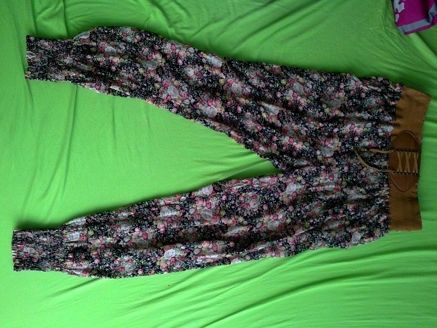 nabízím párkrát vzité kalhoty haremky květinové,značka neuvedena,zakoupeny na aukru