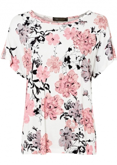květované tričko v krémově bílé barvě, nové, nenošené, jen vyzkoušené a vyprané, 95% bavlna, 5% elastan, délka 65 cm, šířka 48 cm, Zásilkovna 79 Kč