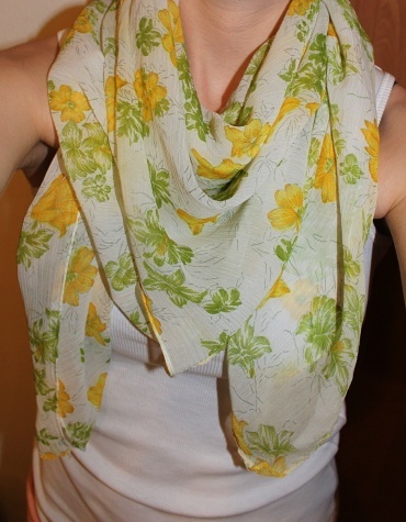 Moc pěkný šátek, nenošený, vhodný jen tak na tílko či tričko, které i když je obyčejné tak vynikne. Původní cena 299 Kč.