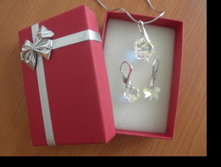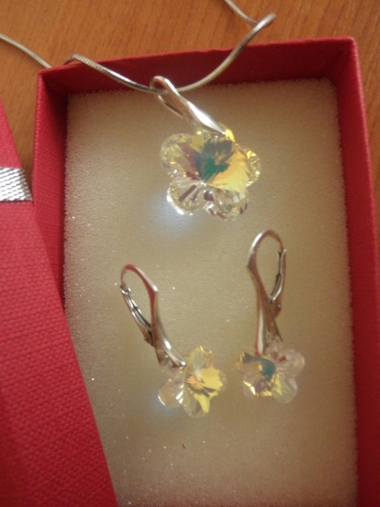 Kytičky náušnice plus přívěšek a stříbrnné lanko k tomu zdarma,opuncováno,čirý kov,ale je na něm úprava,že mění barvy.Krásné,jen já už mám podobné .