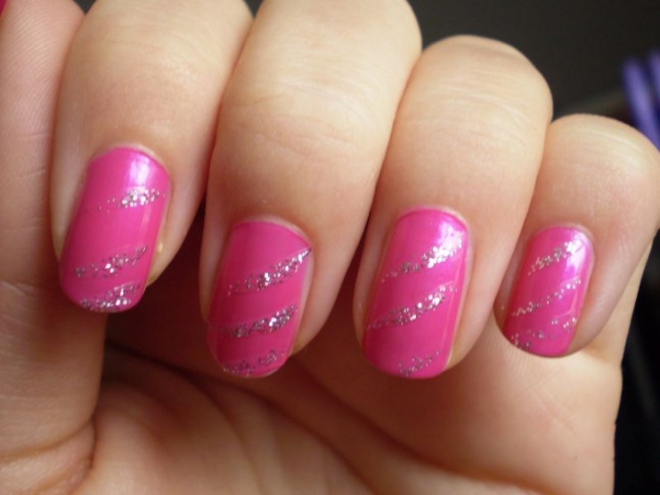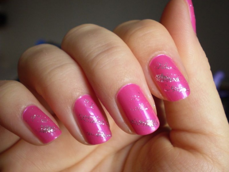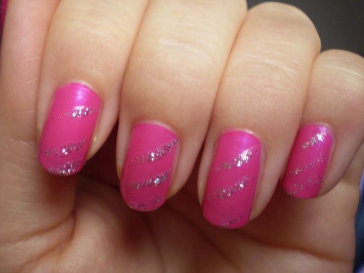 Po dvou dnech od nalakování mi dorazila stříbrná glittrová zdobička, tak jsem jí hned narychlo musela vyzkoušet. Docela to ujde, ne?