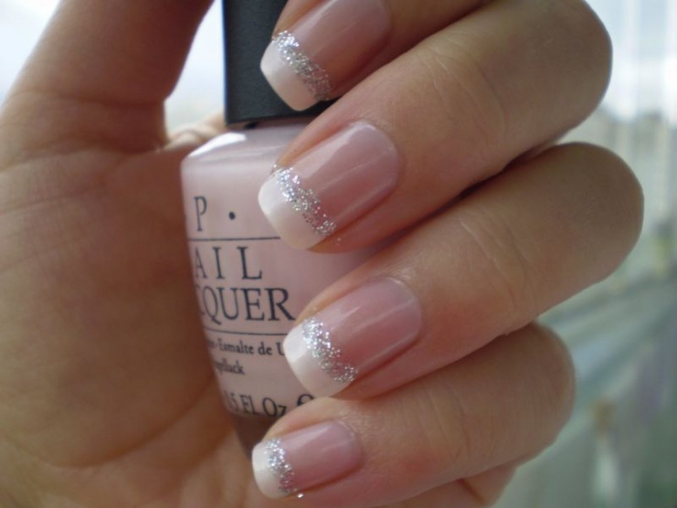 První vážný pokus s glittrovou zdobičkou. Pod ní 2 vrstvy Opi Alpine snow, pak 3 vrstvy Opi I´ll take the cake, pak asi 2-3 vrstvy zdobičky a přes ní nadlak Orly Glosser.