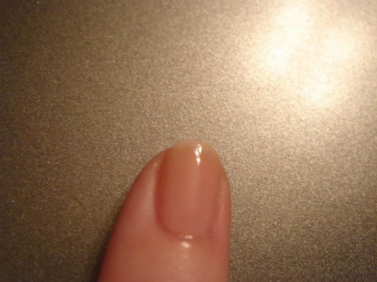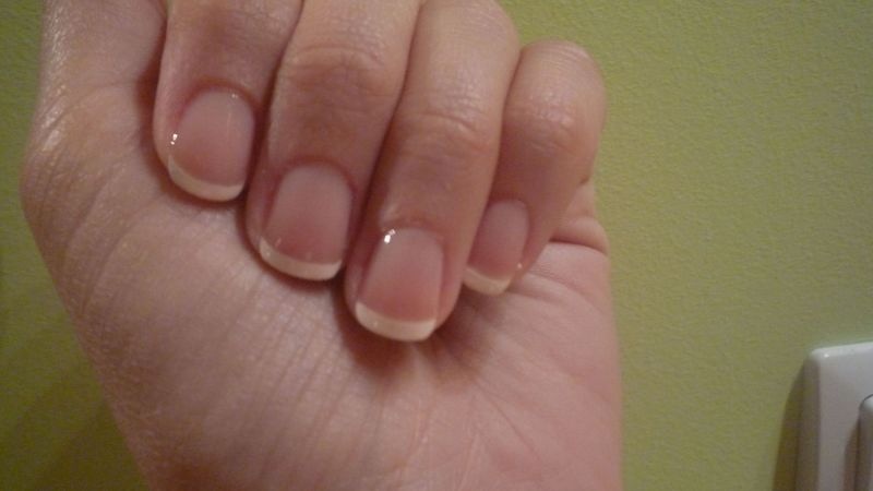 . Tady je bez nadlaku a sušiče, ať to nic nezkresluje. Akorat ty špičky nejsou na fotce moc bile, ve skutečnosti jsou. Barva nehtu ale odpovida.