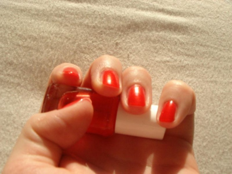 Tohle je fotka mého laku od Essie, takhhle jsou ty nehty pod lakem vidět (na jakémkoli světle, nemusí být slunečno jako na záběru).