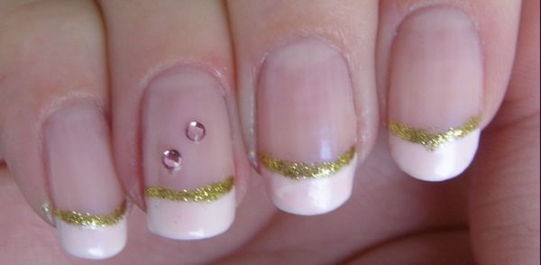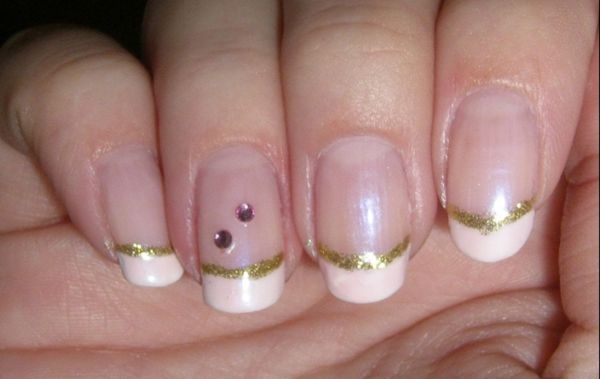 OPI Alpine Snow, Essie Pinking up the pieces, zlatá zdobička a po velmi dlouhé době kamínky, neřešte barevnou kombinaci, doma kamínků moc nemám