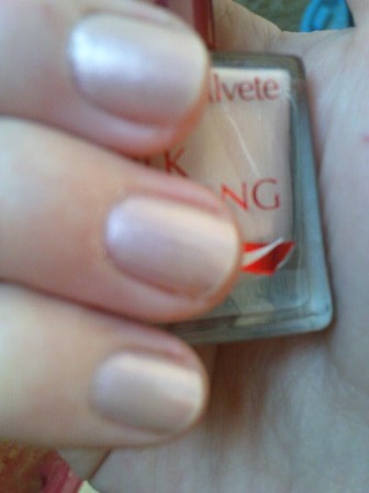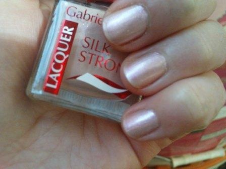Ahojky, posílám NOVINKU od Gabrielly Salvete - Lacquer silk strong, odstín 07 (extra pevný lak s hedvábnými proteiny). Nešlo mi to vyfotit přesně, ale mám lehce opálené ruce a vypadá velmi hezky. Mám ho nalakovaný třetí den, uvidíme, jakou má výdrž. Mají 6 nebo 7 odstínů, teď nevím přesně.