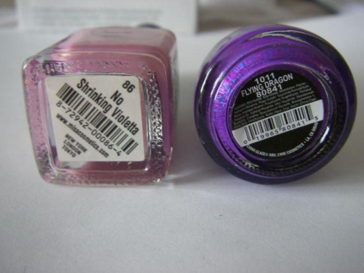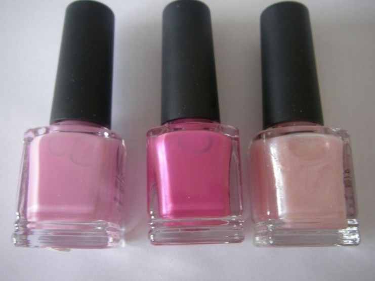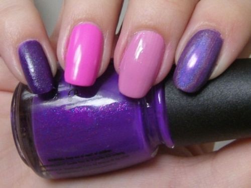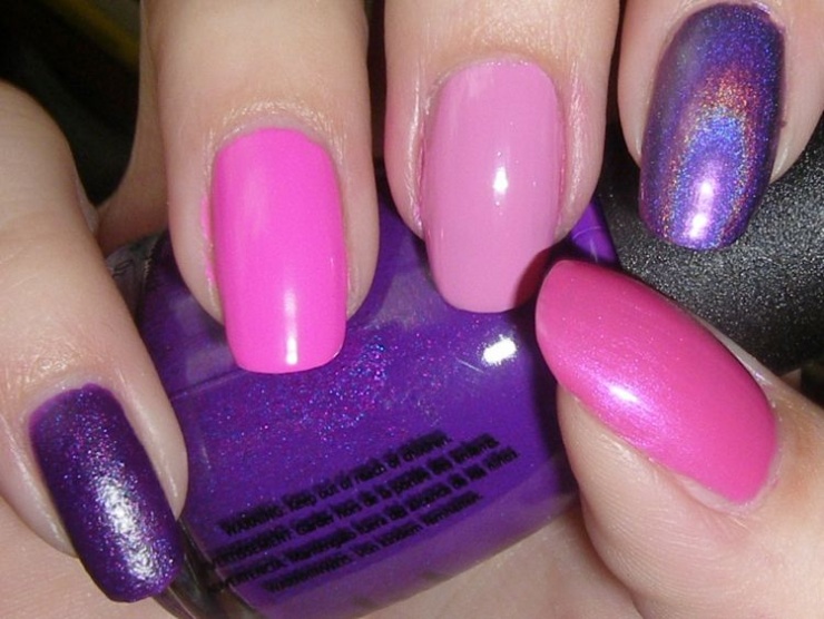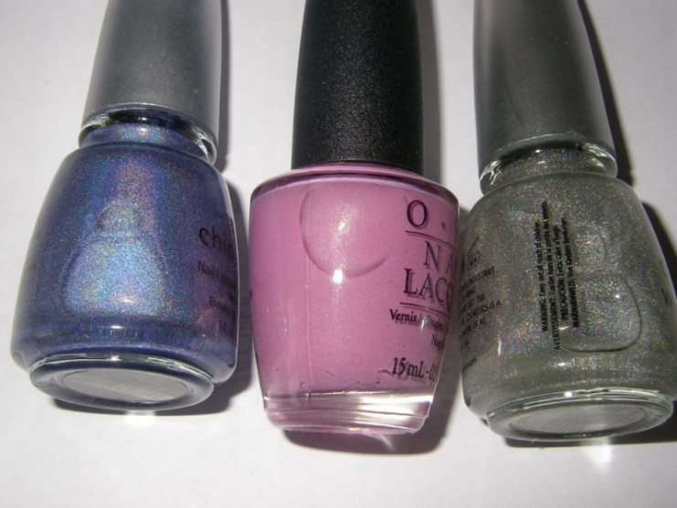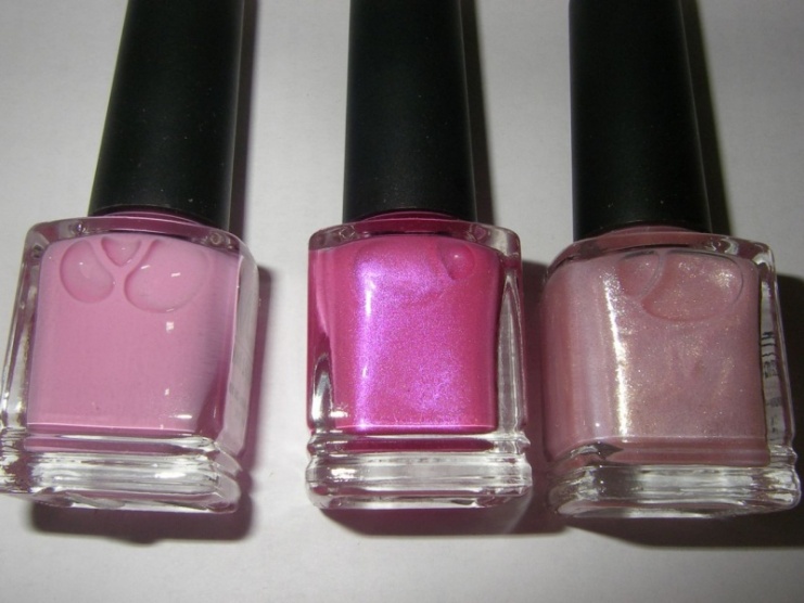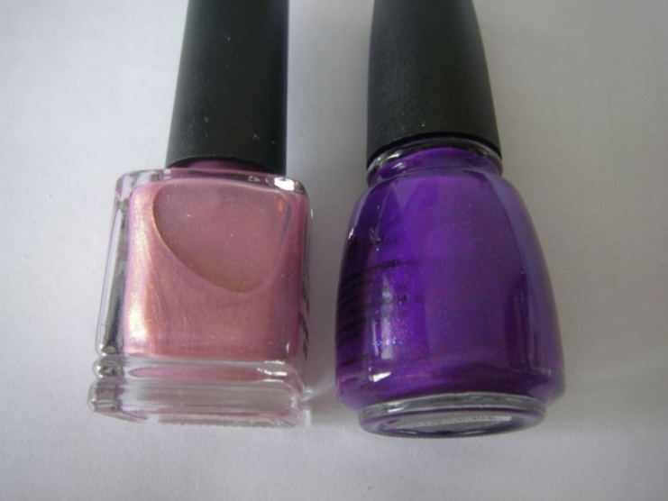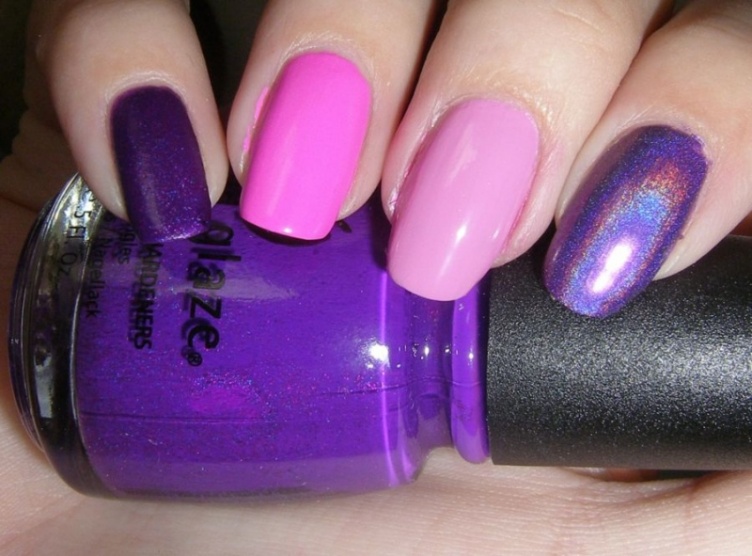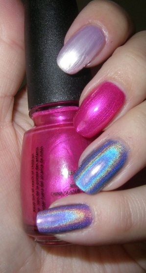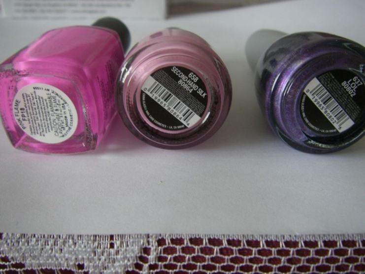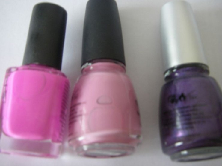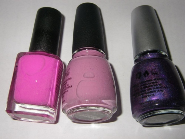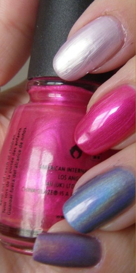Foto č. 1: zleva doprava - China Glaze Flying dragon, Color Club Pink Flame, China Glaze Second-hand silk, China Glaze Lol