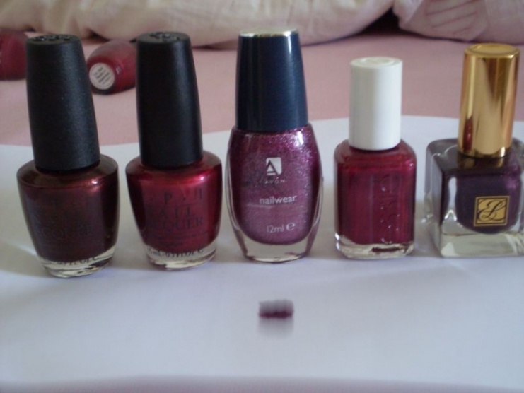 OPI Romeo & Joliet, Opi Buy-buy Tokyo!, Avon Dynamo, Essie After sex, Estee Lauder Plum cassis