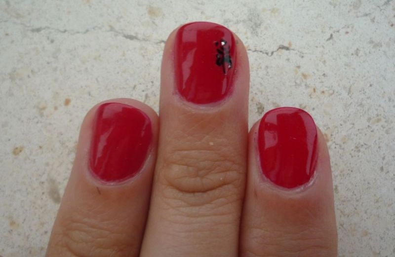 tavimi, mas to moc krasne! ta ozdubka k tomu je super, moc se mi to libi. A do te barvy jsem se asi zamilovala. Mne se strasne moc libi cervene odstny na kratkych nehtech