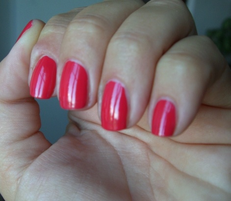 když je řeč o červených lacích, přidávám jeden z laků Zoya, které mi přišly v pátek, jsou bez formaldehydů a toluenu, líbily se mi na jejich stránkách odstíny, tak jsem jej chtěla zkusit. Pracuje se s ním fajn, než zaschl vypadalo to, že bude dělat "rýhy", ale opak je pravdou, po zaschnutí se leskne a má jednolitý povrch.