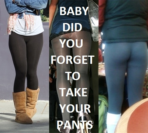 A nebo se teď dělají takové legíny, co jsou nahoře řešené jako kalhoty, jsou z neprůhledné látky a s krátkym vrškem se klidně nosit dají... možná to pak některé holky mate a ty si myslí, že když se tak dají nosit jedny, jde to se všemi - "legíny jako legíny"...