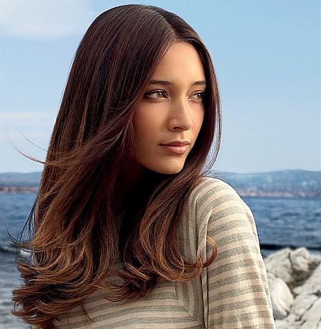 Tohle se mi strašně líbí, říká se tomu ombre hair. Někde jsem viděla i návody, jak na to, ale moc bych se do toho doma nepouštěla. Líbí se mi to ale opravdu jen trošku zesvětlené, u té modelky vs je to už moc. Nějak takhle: