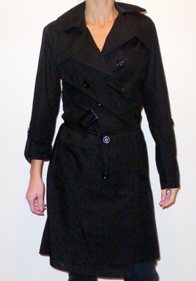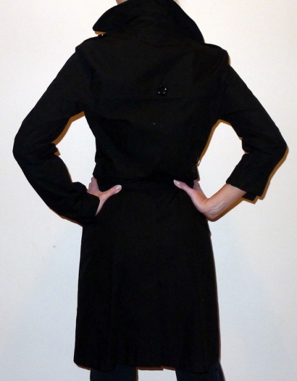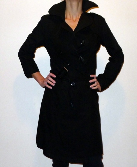 Zcela nový černý kabátek v délce po kolena včetně cedulek, má krásný límec, bohužel tím jak je černý, tak šel špatně nafotit. V pase je pásek na sponu, ale na fotce ho mám zavázaný klasicky. Ukázka rukávů - lze nosit klasicky jako dlouhé rukávy nebo na druhé ruce ukázka jak lze ohrnout a zapnout na knoflík, tedy zkrátit. Je lehounký, bez podšívky, vypadá krásně. Vhodný na jaro, léto i podzim. Vel. 38