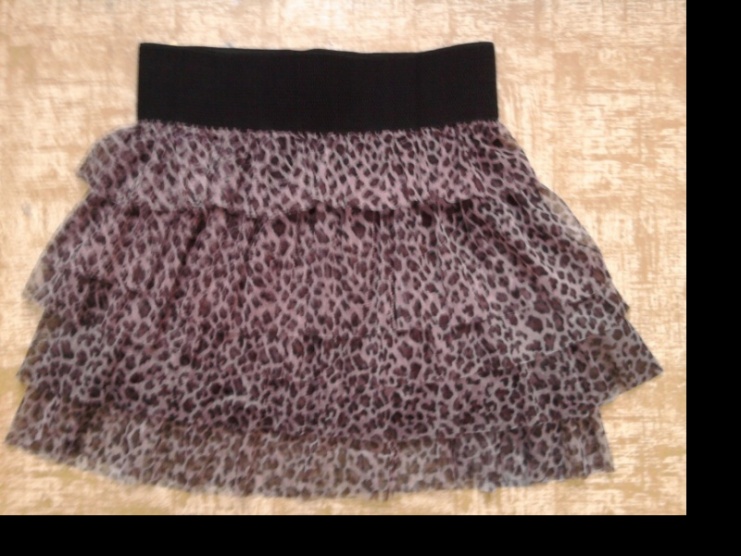 0Nabízím úplně novou leopardní sukni. Krásná volánková s černou gumou v pase. Cena 350 + 40 pošta