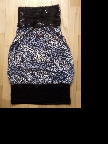 Prodám nenošenou, pouze vyzkoušenou leopardí tuniku s flitry velikosti S/M je velmi elastická, takže se přizpusobí i větší velikosti. Tunika se dá nosit také jako minišatičky. Délka tuniky je 67 cm.