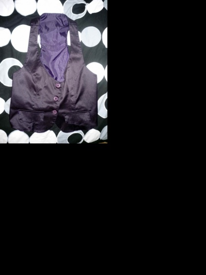 Nošená, ale zachovalá vestička fialové barvy lesklého saténového materiálu. Značka ani velikost není uvedena, ale odhaduji to na S