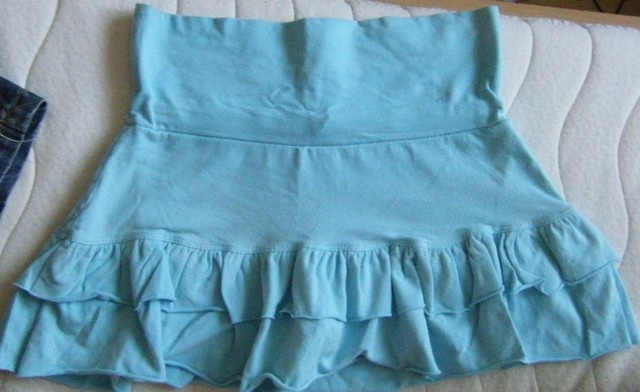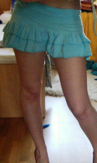 Prodám letní volánovou tyrkysovou minisukni. Koupená ve Francii v obchodě Pimkie. Sukně je hodně elastická. Vevnitř jsou všité minišortky stejného materiálu i barvy. Sukně má vysoký pas, který se nosí ohrnutý. Nošená jednu sezonu.