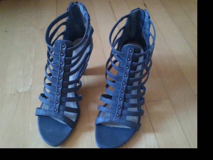 Nabízím letní sandálky na 7 cm podpatku, velmi pohodlné - vzadu jsou gumičky, takže se krásně přizpůsobí a netlačí, modré barvy s nádechem šedé, velmi pěkné, délka stélky 25 cm, vel. 38. Ani jednou jsem je neměla na sobě, unáhlila jsem se v koupi, hrozně se mi líbily - PC 750,- Kč.