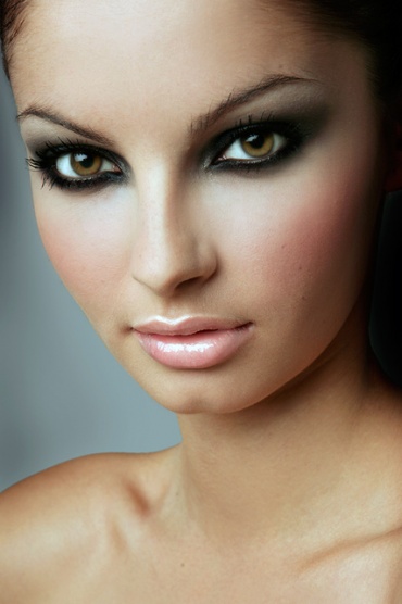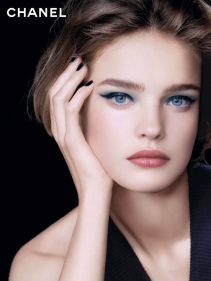 A tady je zrovna ta kombinace sv. modrých očí a zemitých odstínů, ale modelka vypadá, že má tmavé vlasy i obočí hnědé, takže to vypadá taky skvěle*