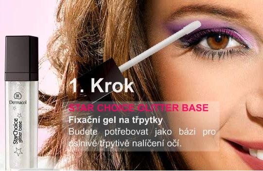 A třpytky si dávám, dá se s nima udělat i linka nebo jen "poprášit" víčko, mám vyzkoušené ty od Dermacolu, dáš takovou tu bázi pod třpytky a na to naneseš štětečkem třpytky, tady je návod: