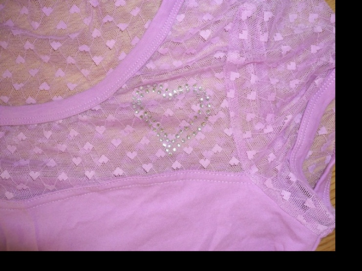 Moc hezké tričko s krajkou a kamínkovou aplikací ve tvaru srdce. Nikdy nenošené. Vel uvedena XL, ale já doporučuji S až M. Elastický materiál.