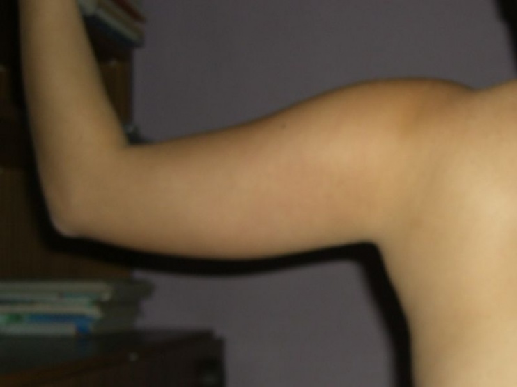 Je to těžko posoudit to podle fotky, ale já tam změnu vidím, nemáš už to tak "prověšené". Myslím, že si dala dole 1,5 cm, což je myslím při pažích dost dobrý výsledek a asi není konečný.